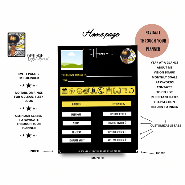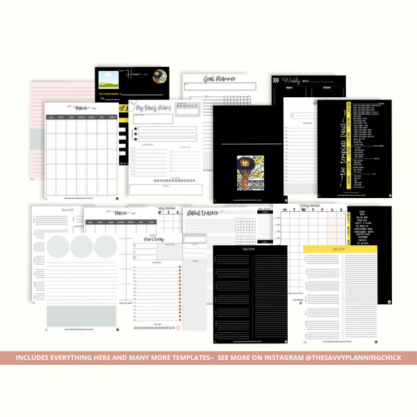 🧿PLANNER INCLUDES: * 2 Beautiful Covers * Hey Sis Hey Page * Index Page * Home Page ( Use to Navigate through Planner) * Over 30 templates to mix and match! (Weekly spreads are undated | Sunday start) * 4 Pre-labeled dividers (Calendar | Notes | Trackers | Templates) * 4 Customizable dividers (For you to customize) * 12 calendar months (Undated | Sunday start) * Template Vault (over 30 templates to mix and match! * Digital Planning 101 (Help Section) 🧿PLANNER TEMPLATES: Year-at-a-glance (2021-2022) Important Dates at-a-glance 12 Calendar Months (Undated, Sunday Start) *ALL WEEKLY TEMPLATES START ON MONDAY AND ARE UNDATED* Weekly Two Column Spread Weekly Two Column Spread (Left) Weekly One Column Spread (Blank Right Column) Weekly Block Spread (Lined) Weekly Block Spread (No lines) Weekly Block Spread (Black background) Weekly Hourly 6am-9pm (Pink heading) Weekly Hourly 6am-9pm (Black heading) Weekly Three Columns Weekly Two Columns (Color heading) Weekly Two Columns (Black heading) Weekly Two Columns (White heading) Weekly Two Columns (Black Page) Today's Task-Daily Get It Done-Daily My Daily Plans-Daily M Plans Today-Daily 🧿NOTES AND JOURNAL TEMPLATES: My Notes Lined and Circles Lined and Split Lined and Blocks Lined Three Columns White Lined Black Lined Grid White Blank Black Blank 🧿 LIFESTYLE & EXTRA TEMPLATES: Vision Board Weekly Schedule Brain Dump Contacts Passwords Meeting Notes Cleaning Tracker Habit Tracker About me Monthly Goals To Do List
